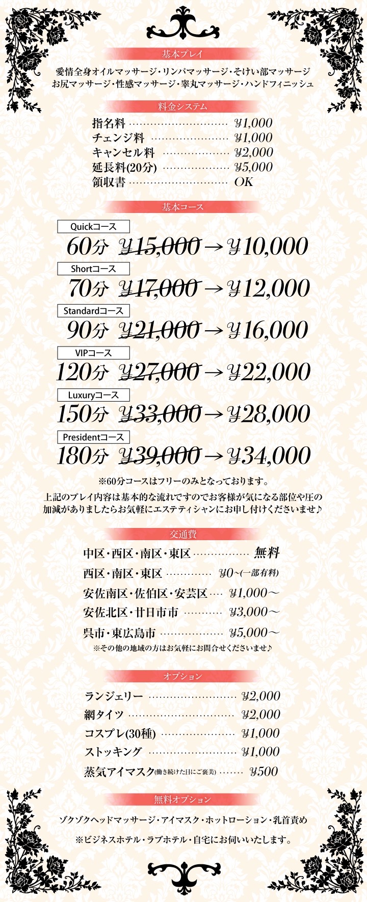 90分コース+10分サービス →100分 16,000円