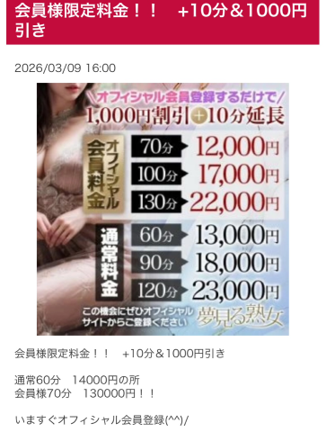 夢熟のオフィシャル会員様のお得情報