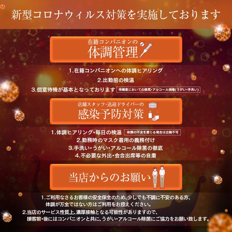 当店は、お客様に楽しい時間を過ごして頂く為、また、当店の女性に安全にお仕事をしてもらう為に、