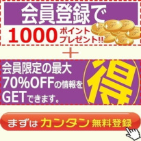 会員限定の最大の70%offの情報をGETできます。