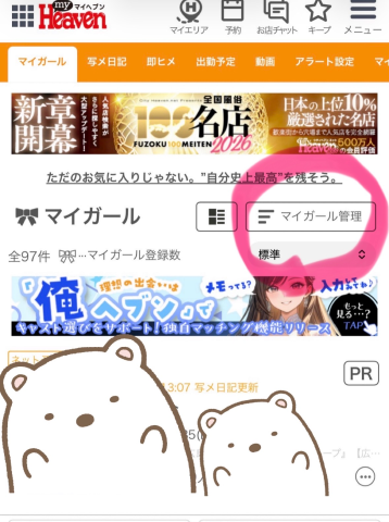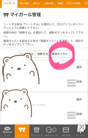 ①マイガール欄の右上マイガール管理