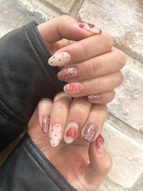 [お題]from:カワヨさんお題:今日は「ネイル女子の日」お気に入りのネイル見せてください!に回答♪去年のバレンタインネイルはラブリーでお気に入り💅でも 普段はどシンプルです🤍結局シンプルしか勝たん✊ -