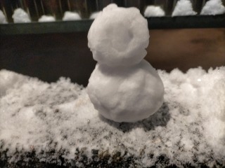 チビ雪だるまを、、笑
