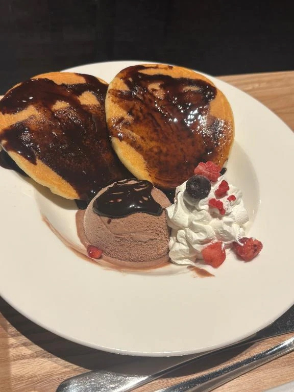 一緒にパンケーキも食べれて ‎