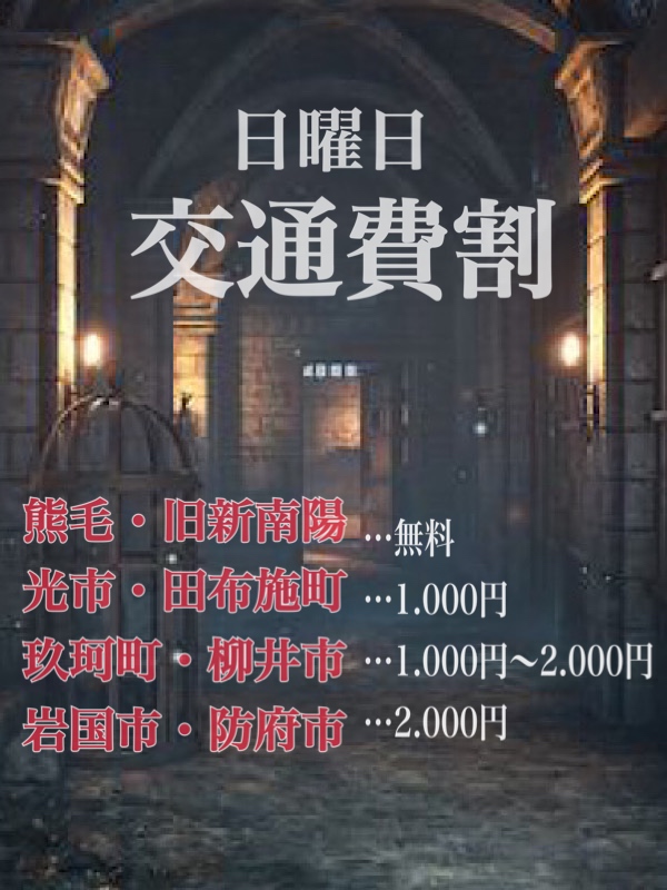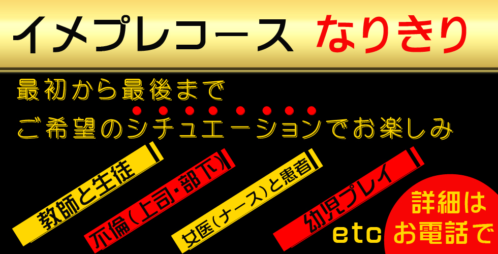 | どこから責められるかお楽しみに♪ ★50min. 11.000yen. ★80min 16.000yen. ※道具を使ったプレイはありません 【プレイまでの流れ】 ①お電話受付 ②ホテルへ入室 ③入浴・リクエストか準備(責めのご希望があれば電話口にて) ④女の子ホテル到着 ⑤お客様にアイマスクを渡し、女の子入室 ⑥事前にテーブルの上に料金を置いて下さい。 基本はアイマスクを着用してもらい、寝てる貴方を求める極楽プレイです♪ アイマスクは持参していただけるとスムーズですが、 ない場合は女の子から渡します。 (注意事項) ※プレイ終了までアイマスクは外さないで下さい。 ※必ず入浴を済ませて下さい。 入浴拒否、あきらかに入浴されてないと女の子が判断した際には プレイは中断、または中止させていただきます。 その際の料金は返金されない場合がありますのでご了承くださいませ。 トラブル防止の為、ご自宅への派遣は行っておりません。 | |