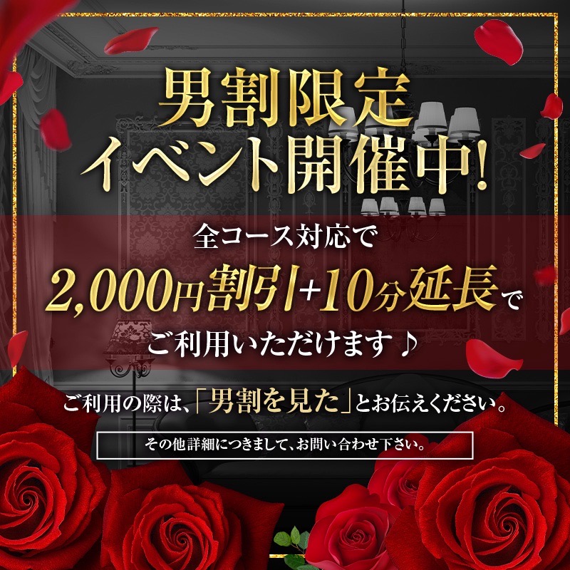 ※受付の際に「男割見た」とお伝えなき場合適用外となりますので必ずご予約時にお伝え下さい!